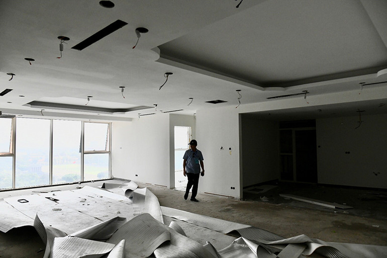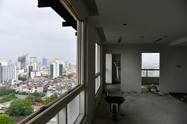 Trước đó, các thiết bị bao gồm kính, vách ngăn, tủ bếp, bàn ghế... đều được tháo dỡ khỏi các căn hộ.