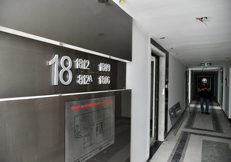 Khu vực hành lang tầng 18 với sơ đồ, vị trí các căn hộ: