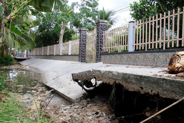 Điểm sụt lún đất bờ kênh Láng Hầm, ở ấp Xẻo Cao, xã Thạnh Xuân, huyện Châu Thành A.