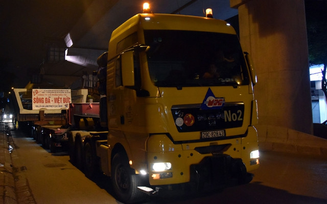 Phiến dầm U được vận chuyển bằng xe kéo rơ moóc chuyên dụng 23 hàng bánh từ nhà máy sản xuất tại Hà Nam về Hà Nội.