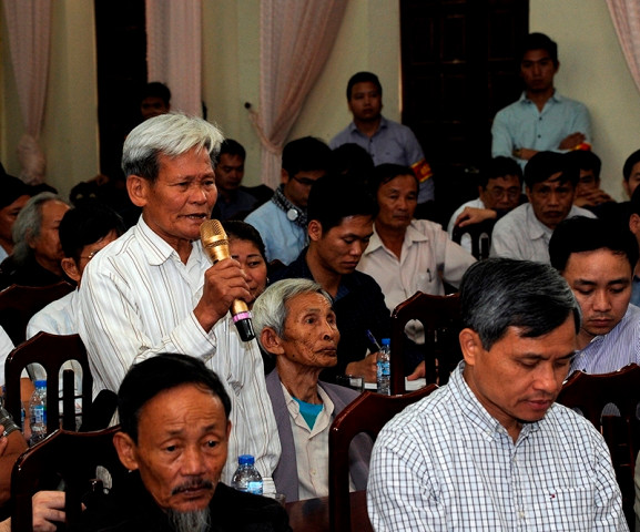Đại diện người dân xã Đồng Tâm phát biểu tại buổi đối thoại.