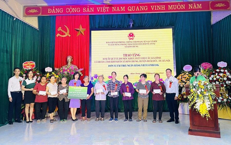 | Ngân hàng Vietcombank - Chi nhánh Bắc Hà Nội trao 10 suất quà cho các gia đình nghèo, cận nghèo, gia đình có hoàn cảnh khó khăn và 200 móc chìa khoá an ninh trật tự |