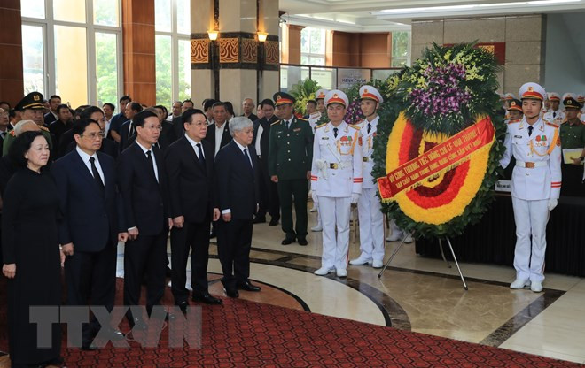 Đoàn đại biểu Ban Chấp hành Trung ương Đảng do đồng chí Trương Thị Mai, Ủy viên Bộ Chính trị, Thường trực Ban Bí thư, Trưởng Ban Tổ chức Trung ương dẫn đầu, viếng Phó Thủ tướng Lê Văn Thành.