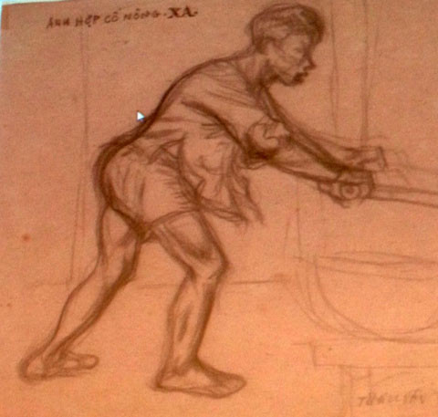 Khi chuyển lên chiến khu sơ tán, có thể thấy phong cách sáng tác của họa sĩ đã thay đổi hoàn toàn. Những bức phác họa của ông giống như tấm gương phản chiếu hiện thực cuộc sống thời bấy giờ: Những dãy phố hoang tàn đổ nát ở thị xã Phú Thọ, các dân công tải lương thực đạn dược, khuôn mặt, dáng vẻ của những người nông dân, những người địa chủ trong cuộc họp cải cách ruộng đất, phong cảnh làng quê, ngôi nhà của một địa chủ, cảnh rừng Việt Bắc… mỗi bức họa cho thấy sự quan tâm sâu sắc đến số phận của nhân vật.