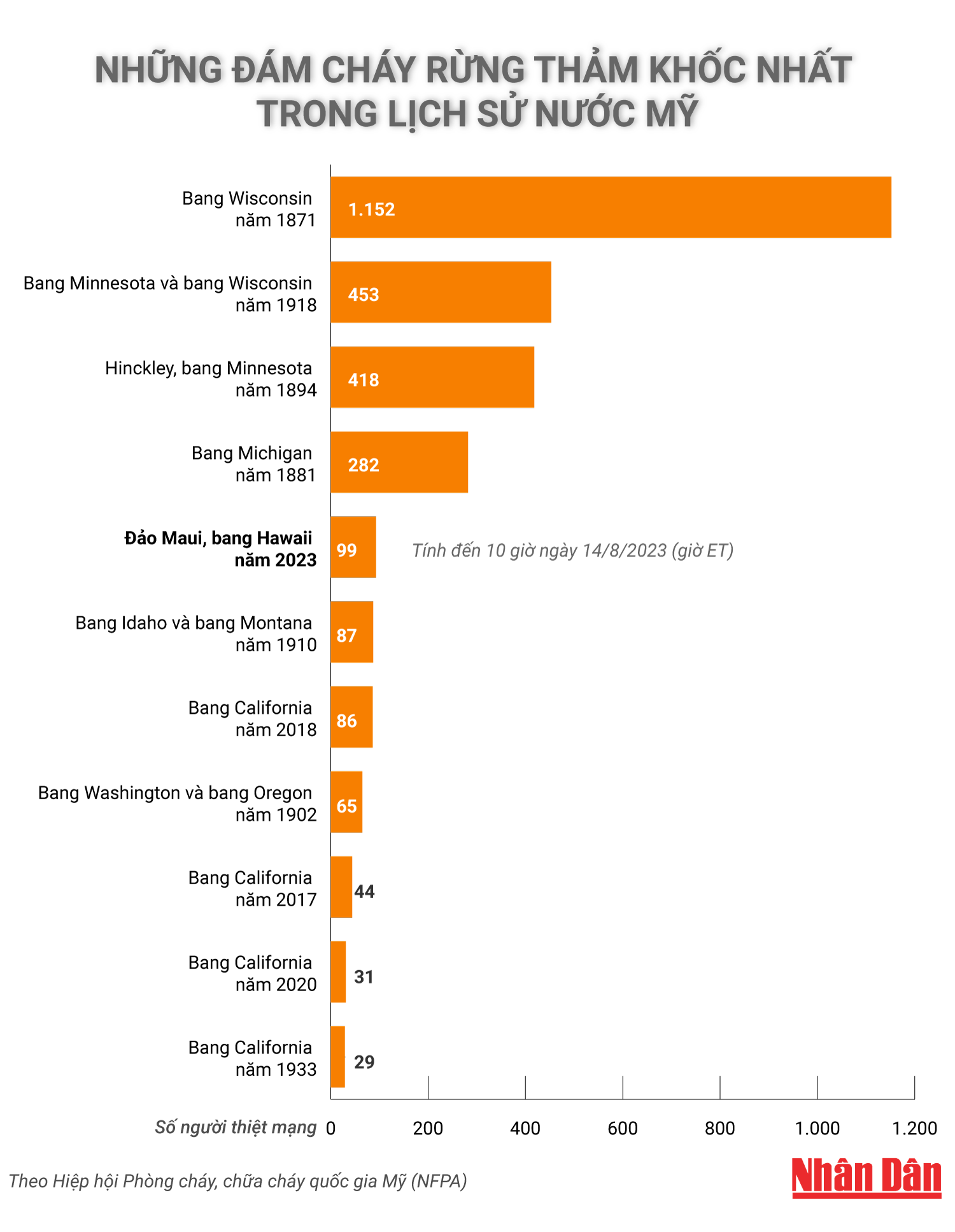 Thiệt hại do cháy rừng trên đảo Maui (tính đến ngày 14/8 - giờ địa phương):