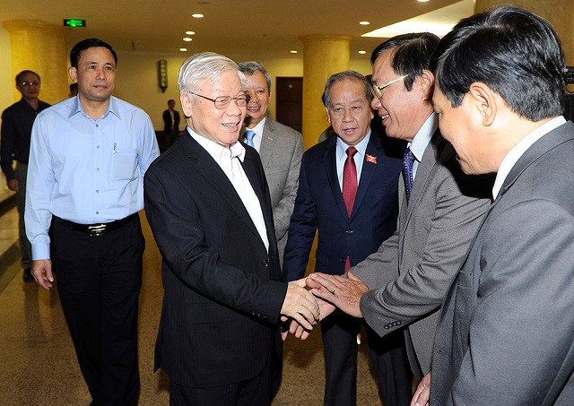 Tổng Bí thư, Chủ tịch nước Nguyễn Phú Trọng với các đồng chí Ban Thường vụ Tỉnh ủy Thừa Thiên Huế.
