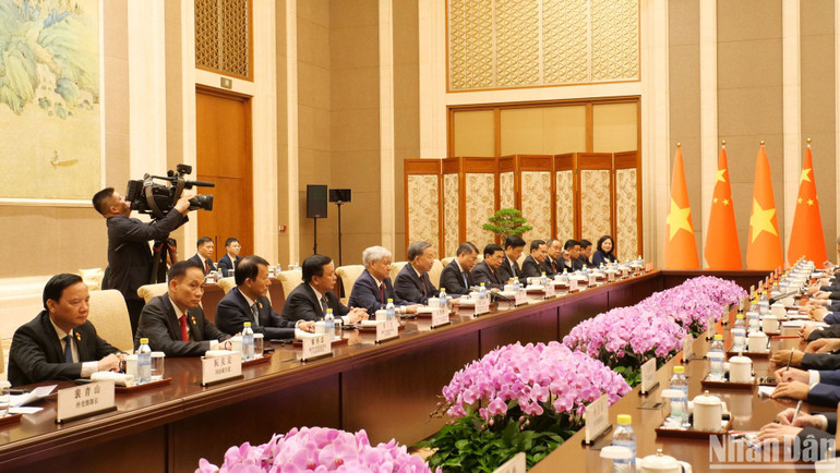Tổng Bí thư, Chủ tịch nước Tô Lâm nhấn mạnh, chuyến thăm cấp Nhà nước đến Trung Quốc lần này là nhằm kế thừa, tiếp nối sự coi trọng cao độ của Đảng, Nhà nước Việt Nam, các thế hệ lãnh đạo Việt Nam, trong đó có cố Tổng Bí thư Nguyễn Phú Trọng đối với quan hệ Việt Nam-Trung Quốc.