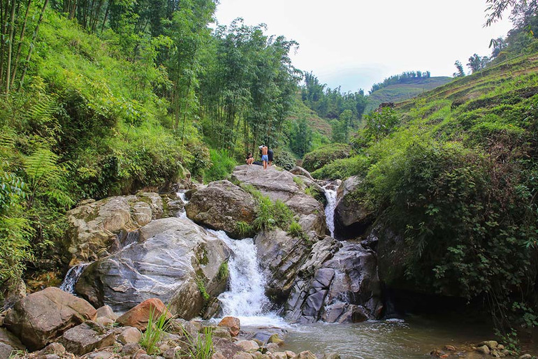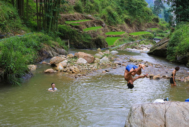 ...hoặc ngược những con suối nhỏ rất đẹp đổ từ trên núi xuống suối Mường Hoa để ngâm mình trong làn nước mát lạnh ở đầu nguồn.