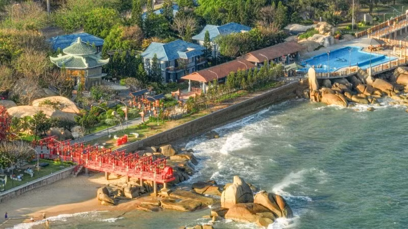 Với một cây cầu đỏ rực nối thẳng ra hướng biển, du khách khi đến nơi đây thường phải “hết dung lượng” bởi phong cảnh nên thơ. Nơi mà các cặp tình nhân sẽ tìm đến để “khóa chặt” những chiếc ổ khóa tượng trưng cho tình cảm của họ với mong ước về một tình yêu đẹp bền chặt, vững mãi không thể phá vỡ.