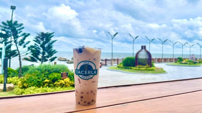 Tọa lạc trong khuôn viên Khu du lịch Trân Châu Beach & Resort sang trọng, đẳng cấp 4 sao nên cửa hàng Tacerla Tea House được thừa hưởng không gian thoáng đãng với kính bao quanh để đón ánh nắng tự nhiên và hướng quan sát nhìn thẳng ra đại dương mênh mông.