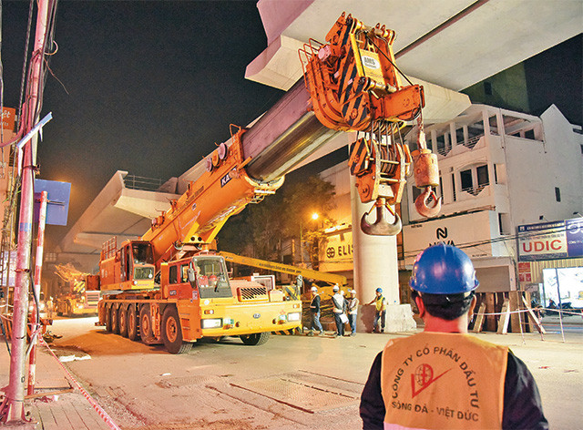Rạng sáng 23-12, phiến dầm chữ U cuối cùng đoạn tuyến trên cao, dự án đường sắt đô thị Nhổn - Ga Hà Nội đã được lắp đặt thành công. Hơn 60 cán bộ, công nhân cùng các lực lượng chức năng đã được huy động, phối hợp thực hiện từ khâu vận chuyển cho đến lắp đặt, bảo đảm an toàn và chính xác.