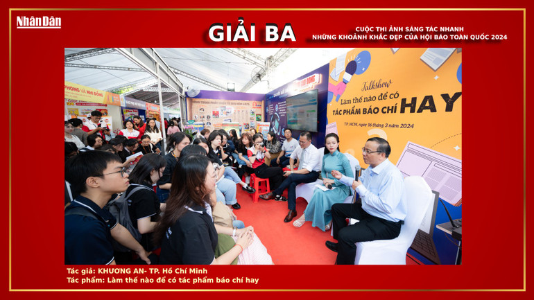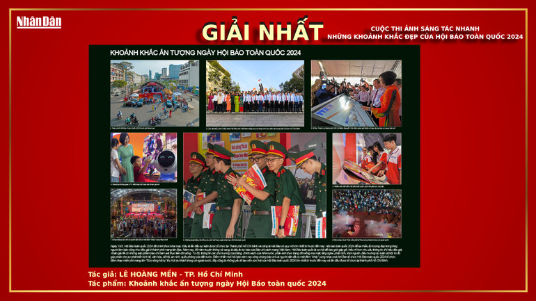 Trong khuôn khổ Hội Báo toàn quốc năm nay, Báo Nhân Dân tổ chức cuộc thi ảnh sáng tác nhanh với chủ đề “Những khoảnh khắc đẹp của Hội báo toàn quốc 2024”, với hy vọng nhận được những khoảnh khắc đẹp và ý nghĩa của các nhà báo và công chúng yêu nhiếp ảnh ghi lại những hoạt động trong khuôn khổ Hội báo, cũng như tạo ra một sân chơi dành cho các nhiếp ảnh gia và những người yêu thích chụp ảnh thể hiện niềm đam mê và sự sáng tạo của mình.