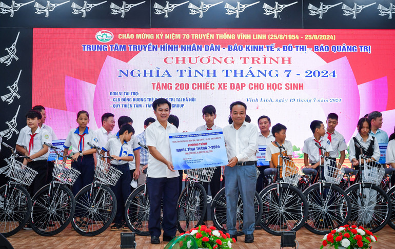 Chiều 19/7, Báo Kinh tế & Đô thị phối hợp với Báo Quảng Trị, Trung tâm Truyền hình Nhân Dân (Báo Nhân Dân) và Câu lạc bộ Đồng hương Trẻ Quảng Trị tại Hà Nội, Quỹ Thiện Tâm (Tập đoàn VinGroup) đã tổ chức trao tặng 200 chiếc xe đạp cho học sinh nghèo vượt khó trên địa bàn huyện Vĩnh Linh. Sự kiện nằm trong chuỗi hoạt động chương trình Nghĩa tình tháng 7 được thực hiện trên 2 huyện Hải Lăng, Vĩnh Linh.