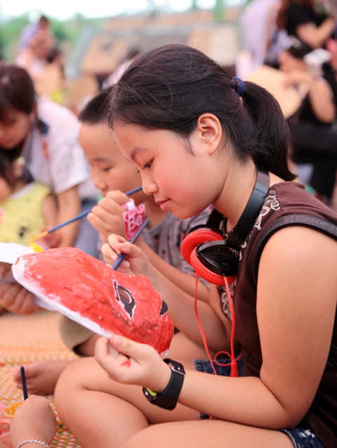 Em Nguyễn Cẩm Anh (học sinh lớp 7) cho biết: "Con rất vui khi được tự tay vẽ nên một chiếc mặt nạ như thế này. Con thấy nó còn đẹp hơn những món đồ chơi được bày bán trên phố. Nhất định con sẽ tự tay làm mặt nạ để tặng cả gia đình trong dịp tết Trung thu năm nay".