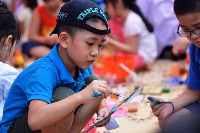 Tại Lễ hội mặt nạ Trung thu, các em nhỏ được tìm hiểu về cách làm mặt nạ giấy bồi truyền thống, tự tay làm những chiếc mặt nạ cho riêng mình, tham gia các trò chơi và trải nghiệm nghệ thuật. Bên cạnh đó, nhiều em nhỏ còn khá hào hứng với việc dùng bột màu rực rỡ để vẽ lên những chiếc quạt giấy – một biến tấu dân gian thú vị từ hình ảnh chiếc mo cau xưa.