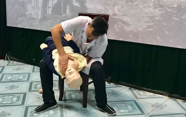 Xử trí ép ngực để đẩy dị vật ra khỏi đường thở.