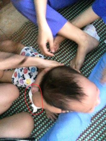 Quá bức xúc, gia đình cháu Long đến ngay cơ sở Sơn Ca rồi bất ngờ đẩy cửa vào phòng thì phát hiện thấy cháu Cù Hoàng Phi Long đang bị hai cô giáo mầm non nói trên dùng dây vải trói hai tay và hai chân ngược ra phía sau, miệng bị nhét giẻ...