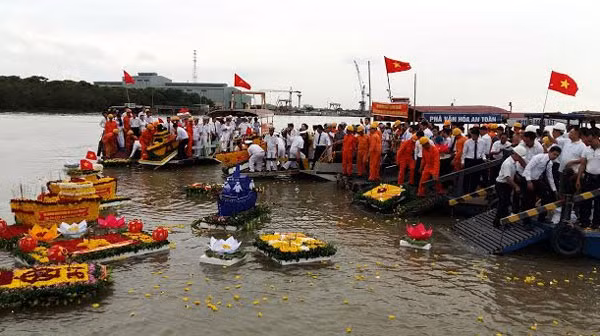 Đông đảo cựu chiến binh hải quân, đại diện cho 400 cựu chiến binh Đoàn tàu không số năm xưa đang sinh sống tại Hải Phòng, cùng cán bộ công nhân cảng, các đơn vị, nhân dân tham dự buổi lễ thắp hương và thả những vòng hoa tươi, những con tàu kết hoa nơi đầu nguồn sông Cấm để tưởng nhớ các anh linh liệt sĩ - những người đã không tiếc máu xương cho độc lập dân tộc, tự do cho quê hương đất nước và cuộc sống tươi đẹp hôm nay.