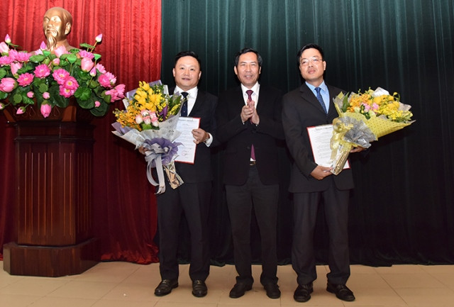 Đồng chí Thuận Hữu, Tổng Biên tập Báo Nhân Dân, Phó Trưởng Ban Tuyên giáo T.Ư trao quyết định bổ nhiệm Ủy viên Ban Biên tập cho hai đồng chí Phan Văn Hùng và Phan Huy Thắng.