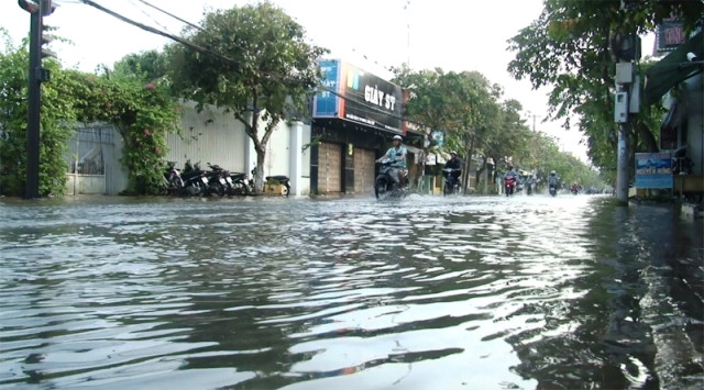 Nước ngập tại một tuyến đường ở thành phố Sa Đéc.