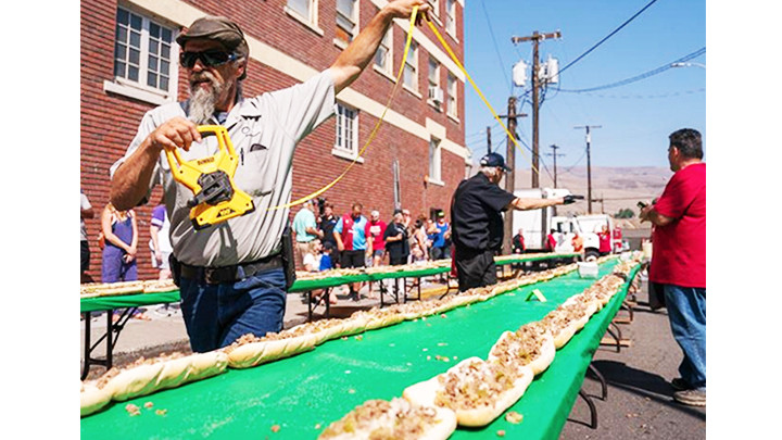 Nhà hàng Main Street Grill ở Lewiston, bang Idaho (Mỹ) đã chế biến một chiếc bánh sandwich kẹp phô mai dài hơn 220 m (trong ảnh). Theo UPI, chiếc bánh xác lập kỷ lục Guinness là “Bánh sandwich dài nhất thế giới”, sau đó được chia thành từng miếng nhỏ để bán cho khách tham quan với giá 10 USD/miếng nhằm gây quỹ quyên góp cho tổ chức từ thiện địa phương.