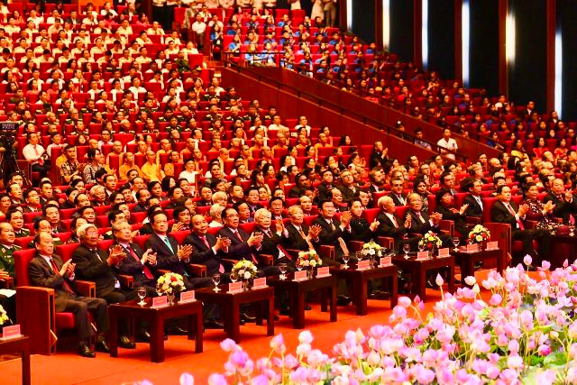 Các đồng chí lãnh đạo Đảng, Nhà nước cùng các đại biểu và đông đảo các tầng lớp nhân dân dự lễ kỷ niệm.