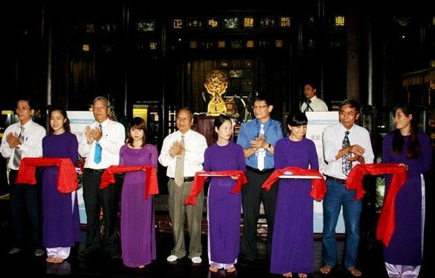 Cắt băng khai mạc phòng trưng bày.