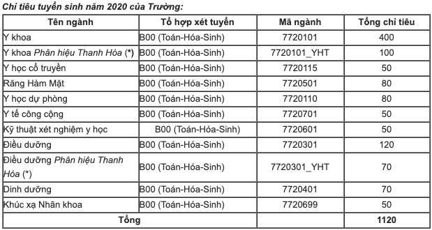 Năm 2020, Trường đại học Y Hà Nội dự kiến 1.120 tổng chỉ tiêu, trong đó, Nhà trường dành tốt đa 25% chỉ tiêu cho đối tượng tuyển thẳng.
