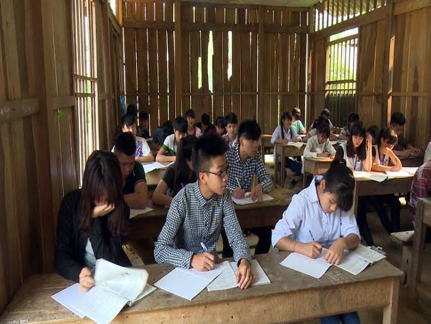 Tường các phòng học là ván bưng, hở hoác, mùa đông gió lùa rét mướt.