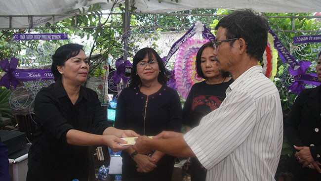 Cùng ngày, bà Mai Thị Hạnh, phu nhân nguyên Chủ tịch nước Trương Tấn Sang và nhóm thiện nguyện đã đến thắp hương, chia buồn và trao số tiền 50 triệu đồng cho đại diện gia đình “hiệp sĩ” Nguyễn Hoàng Nam.