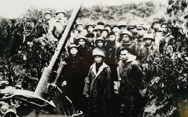 Trong ảnh: Đại tướng Võ Nguyên Giáp (hàng đầu, ngoài cùng bên trái) kiểm tra Pháo cao xạ tại Mặt trận Điện Biên Phủ; đồng chí Phạm Ngọc Mậu đứng ngay sau Đại tướng Võ Nguyên Giáp. (Ảnh gia đình Thượng tướng Phạm Ngọc Mậu cung cấp)