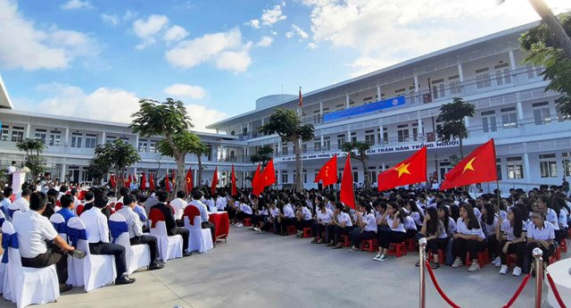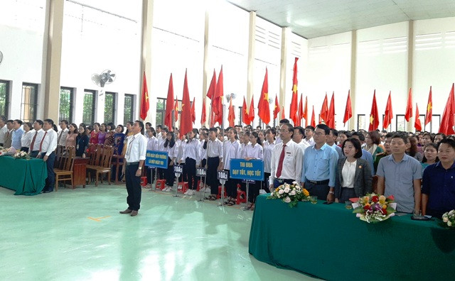 Thầy và trò Trường THCS- THPT Đặng Chí Thanh tại Lễ khai giảng năm học mới. (Ảnh: NGUYỄN TRUNG)