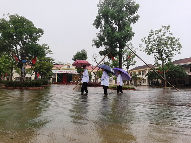 Nhiều trường học tại huyện Phong Điền (Thừa Thiên - Huế) chưa thể khai giảng năm học mới vì ngập lụt (Ảnh: CÔNG HẬU).