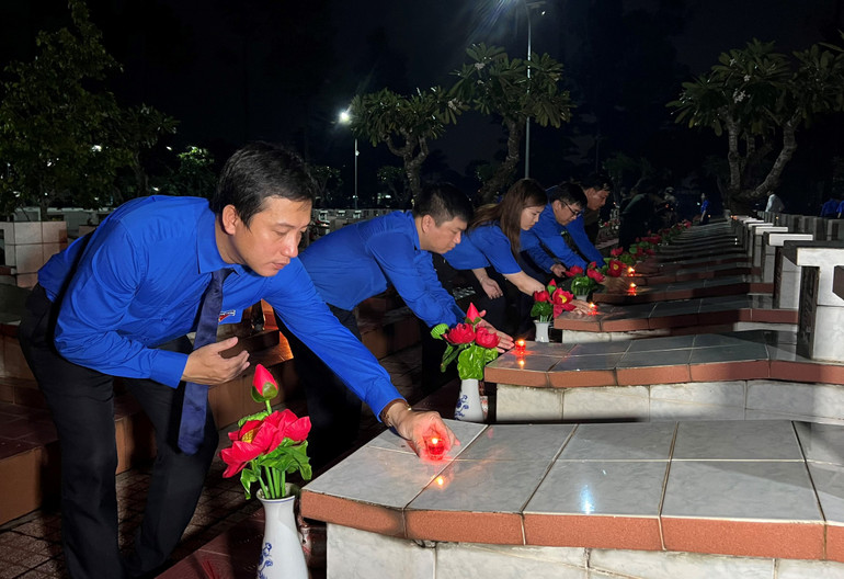 Trong không khí trang nghiêm, tuổi trẻ Long An đã kính dâng lên tượng đài Tổ quốc ghi công và các Anh hùng liệt sĩ tràng hoa tươi thắm, thắp hương, thắp nến cho gần 4.000 ngôi mộ liệt sĩ để tri ân thành kính, khắc ghi công lao của những người con ưu tú của quê hương Long An đã không tiếc máu xương, hy sinh để giành lấy độc lập, tự do của dân tộc.