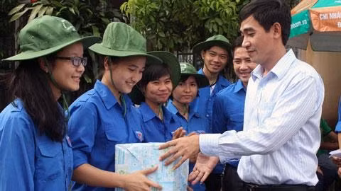 Bí thư Tỉnh đoàn Thanh Hóa trao quà động viên thanh niên tình nguyện hoàn thành tốt nhiệm vụ được giao.