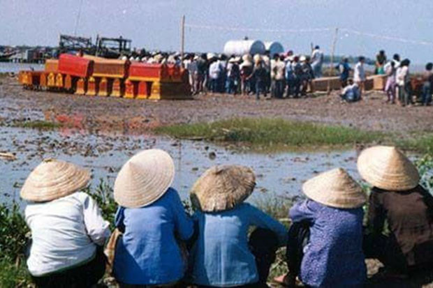 Thân nhân ngóng chờ người thân sau cơn bão Linda năm 1997 (ảnh tư liệu).