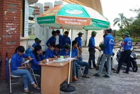 Chốt thanh niên tình nguyện tại cổng Trường đại học Hồng Đức.