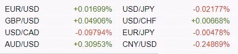 Tỷ lệ thay đổi tương quan giữa một số loại tiền tệ trong 24 giờ qua (theo x-rates.com):