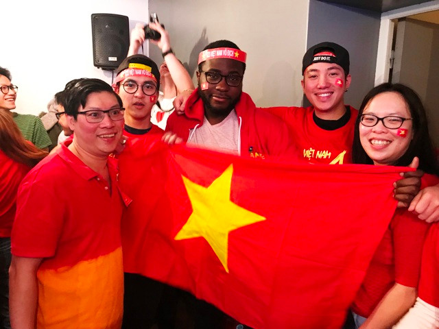 Hòa trong không khí hân hoan của hàng chục triệu người hâm mộ bóng đá trong nước dõi theo các tuyển thủ U23 Việt Nam, bà con Việt kiều và cán bộ, nhân viên các cơ quan đại diện, tổ chức, doanh nghiệp Việt Nam đang công tác tại Campuchia cũng háo hức đón chờ màn trình diễn của các chàng trai áo đỏ trong trận tranh ngôi vô địch châu Á.