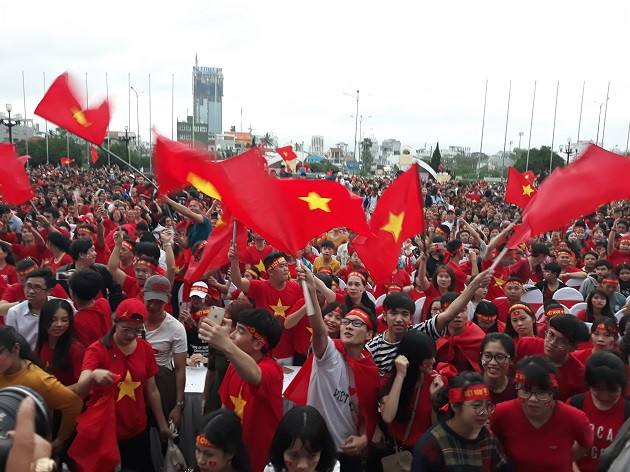 Không khí bóng đá tràn ngập tại các điểm xem bóng đá như: Công viên Biển Đông, các quán cà-phê, nhà hàng và một số chung cư cao cấp có ti-vi màn hình lớn. Giữa lúc tỷ số chưa được cân bằng, phía Công viên Biển Đông có một người bạn nước ngoài cầm lá cờ lớn không ngớt hô to "Việt Nam cố lên", làm ấm lòng người.