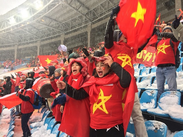 Phóng viên thường trú Báo Nhân Dân tại Trung Quốc cho biết, có khoảng 5.000 cổ động viên đã sẵn sàng tiếp lửa cho đội tuyển U23 Việt Nam trong trận chung kết chiều nay. Mặc dù lúc này tuyết vẫn rơi rất dày, phủ trắng sân vận động Thường Châu, nhưng ban tổ chức chưa phát đi thông tin hoãn hay lùi trận đấu chung kết U23 châu Á.