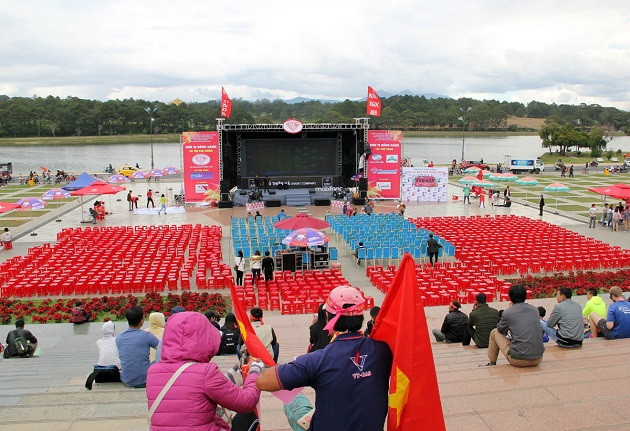 Tại khu vực Quảng trường Lâm Viên bên hồ Xuân Hương thơ mộng của phố núi Đà Lạt, màn hình LED siêu rộng, khoảng 40m2, đã được cơ quan chức năng địa phương cho phép công ty Vietravel - Chi nhánh Đà Lạt, phối hợp công ty tổ chức sự kiện Hồ Thiên Hà - Đà Lạt, lắp đặt phục vụ người dân và du khách đến xem, cổ vũ cho hai đội giao đấu trận chung kết U23 châu Á. Cùng với đó, nhiều đơn vị, tổ chức cũng tham gia biểu diễn các hoạt động bổ trợ, như hoạt náo, văn nghệ…