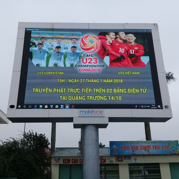 Màn hình Led phục vụ xem bóng đá miễn phí. (Ảnh: Mai Tú)
