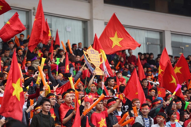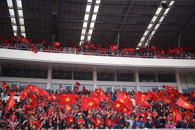 14 giờ 20 phút, sân vận động Mỹ Đình đỏ rực cờ Tổ quốc