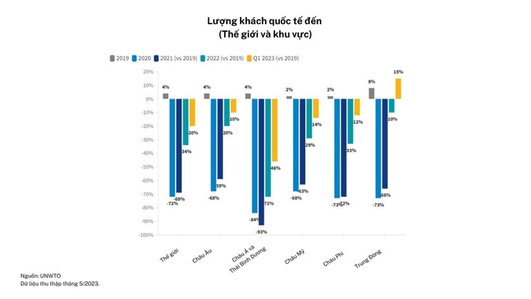 Trong quý 1/2023, Trung Đông là điểm sáng của du lịch thế giới khi là khu vực duy nhất có lượng khách tăng 15% so với mức của năm 2019 và là khu vực đầu tiên phục hồi số lượng khách trước đại dịch trong cả quý.