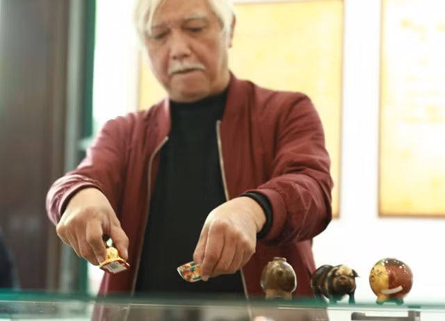 Cũng có lần, vô tình đi trên con đường ven hồ Trúc Bạch, ông ghé một cửa hàng gốm nhỏ, thấy nhiều chú lợn đất nung hình thù có vẻ cổ quái, nhưng rất đẹp cả hình và chất. Ông mua tạm hai sản phẩm với ý định sẽ quay lại vét sạch. Bẵng đi, đến khi trở lại, cửa hàng biến mất, tìm đến nay vẫn không ra, khiến ông tiếc mãi.