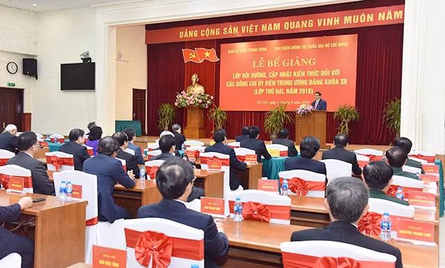 Lớp bồi dưỡng, cập nhật kiến thức dành cho các đồng chí Ủy viên Trung ương Đảng khóa XII (năm 2018). Ảnh: ĐĂNG KHOA