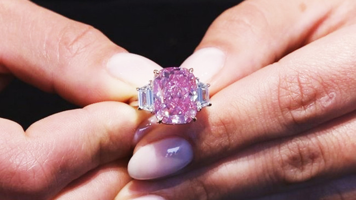 Viên kim cương Eternal Pink (trong ảnh) thuộc loại hiếm có, với mầu hồng tím sắc nét, được định giá 35 triệu USD sắp được đưa ra đấu giá trong tháng 6 tới tại Mỹ. Reuters cho biết, viên kim cương có khối lượng 10,57 carat được quảng cáo là viên kim cương hồng tím có giá trị nhất từng được đưa ra đấu giá.