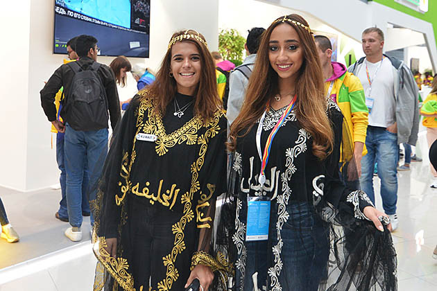 Các nữ đại biểu Kuwait tản bộ tại hội chợ để quảng bá đất nước, con người.