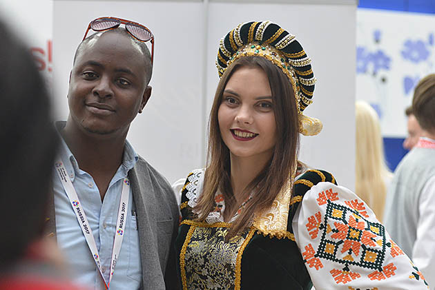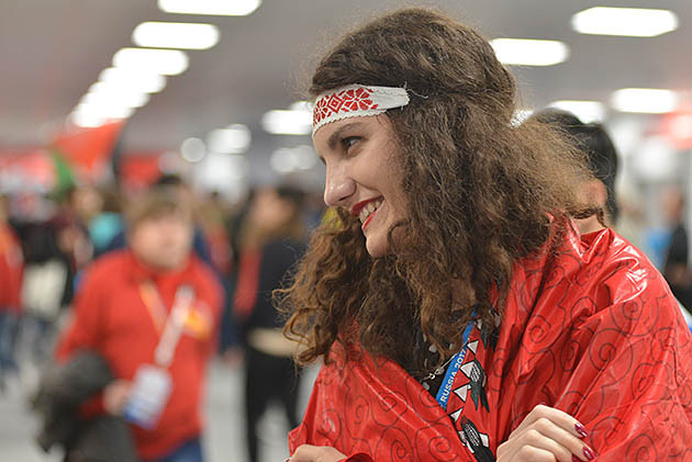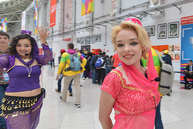 Belarus là một trong những đoàn có gian hàng bắt mắt, hoành tráng nhất tại Liên hoan lần này. Các nữ đại biểu Belarus luôn thân thiện, niềm nở và sẵn sàng chụp ảnh với các bạn bè quốc tế ghé thăm gian hàng.